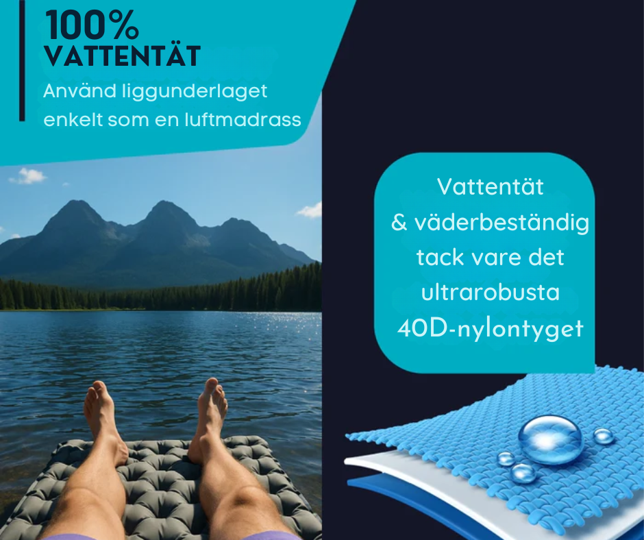 Vain 750 grammaa painavana tuskin huomaat sitä repussasi tai rantakassissasi. Mutta kun asetut makuulle, huomaat: se tuntuu kuin kotisängyn patjalta. Älykäs kennorakenne tarjoaa tasaisen tuen – täydellinen sekä metsäaukeamalla että rantajyrkänteellä.